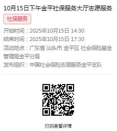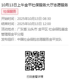 2025年10月13日至10月17日市社保局金平分局大厅志愿服务活动,需要每一个可爱的你参与!