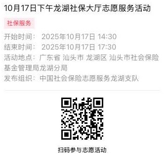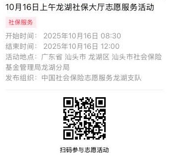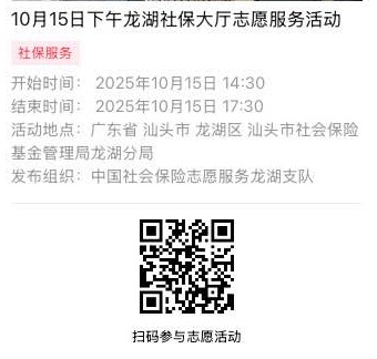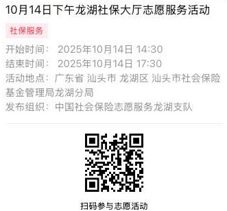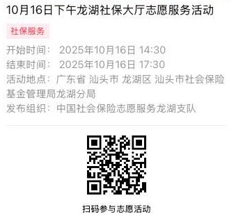 2025年10月13日至2025年10月17日市社保局龙湖分局大厅志愿服务活动,需要每一个可爱的你参与!