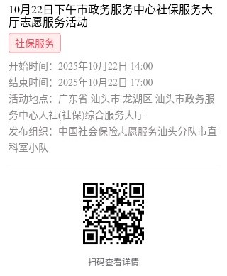 为充分保障我市社保志愿者权益,自2022年10月18日起,报名参加汕头市社保局和各分局志愿活动的同志须持有志愿者证并已激活,请各位志愿者遵照执行。