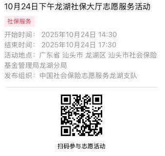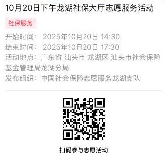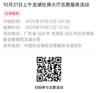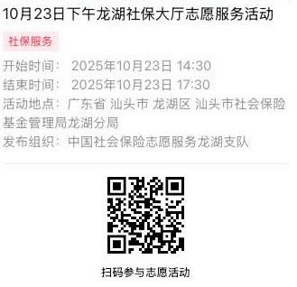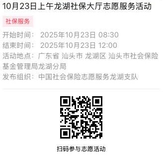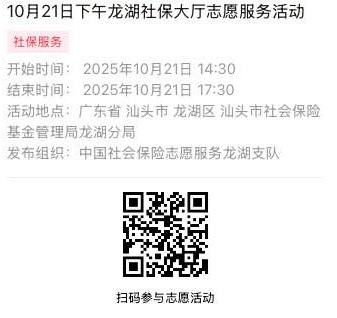2025年10月20日至2025年10月24日市社保局龙湖分局大厅志愿服务活动,需要每一个可爱的你参与!