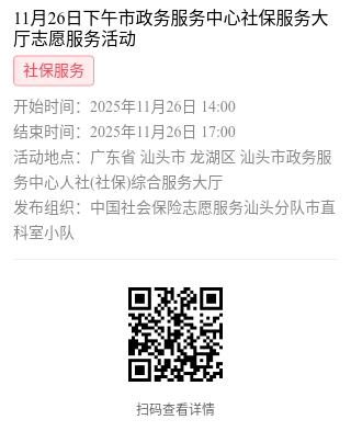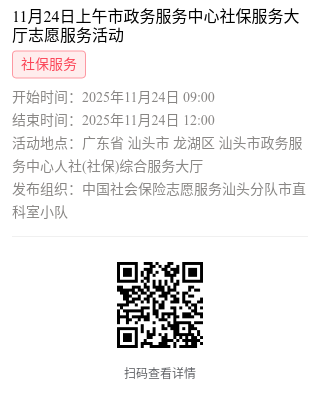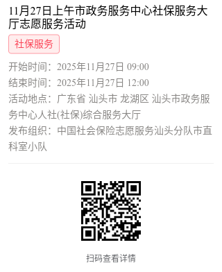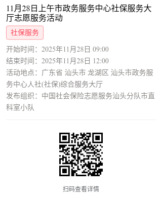 为充分保障我市社保志愿者权益,自2022年10月18日起,报名参加汕头市社保局和各分局志愿活动的同志须持有志愿者证并已激活,请各位志愿者遵照执行。