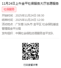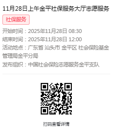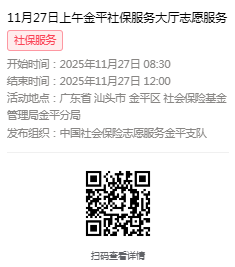 2025年11月24日至11月28日市社保局金平分局大厅志愿服务活动,需要每一个可爱的你参与!