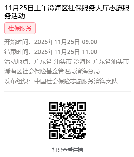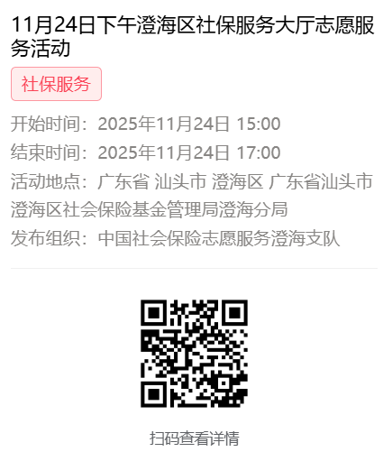 2025年11月24日至11月28日市社保局澄海分局大厅志愿服务活动,需要每一个可爱的你参与!