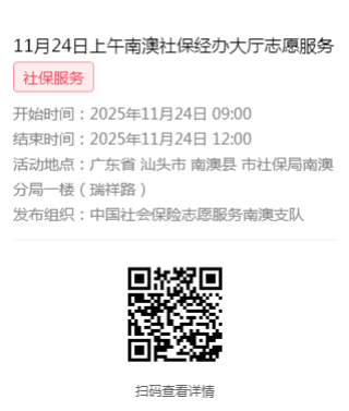 2025年11月24日至11月28日市社保局南澳分局大厅志愿服务活动,需要每一个可爱的你参与!
