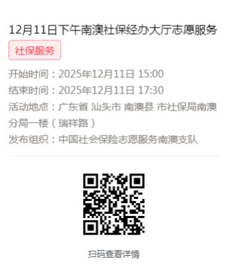 2025年12月8日至12月12日市社保局南澳分局大厅志愿服务活动,需要每一个可爱的你参与!