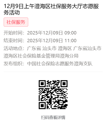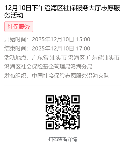 2025年12月8日至12月12日市社保局澄海分局大厅志愿服务活动,需要每一个可爱的你参与!
