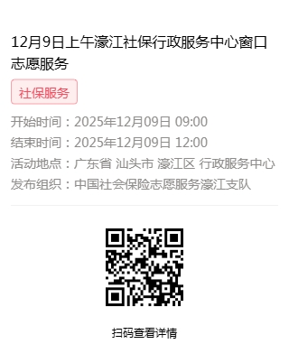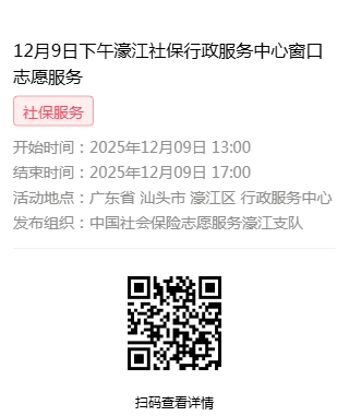 2025年12月8日至2025年12月12日市社保局濠江分局驻行政服务中心窗口志愿服务活动,需要每一个可爱的你参与!