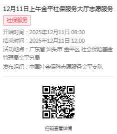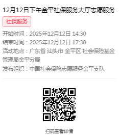 2025年12月8日至12月12日市社保局金平分局大厅志愿服务活动,需要每一个可爱的你参与!