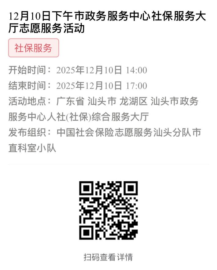 第一步:加入“中国社会保险志愿服务汕头分队”或下属各支队