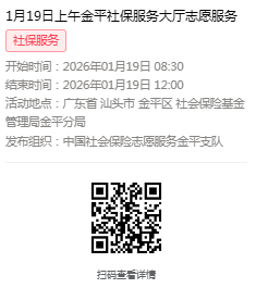 2026年1月19日至1月23日市社保局金平分局大厅志愿服务活动,需要每一个可爱的你参与!