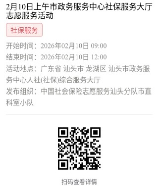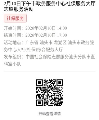 为充分保障我市社保志愿者权益,自2022年10月18日起,报名参加汕头市社保局和各分局志愿活动的同志须持有志愿者证并已激活,请各位志愿者遵照执行。