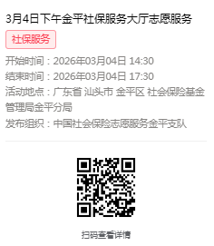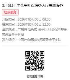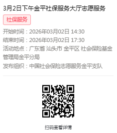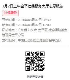 2026年3月2日至3月6日市社保局金平分局大厅志愿服务活动,需要每一个可爱的你参与!