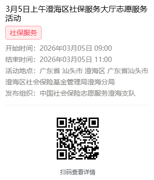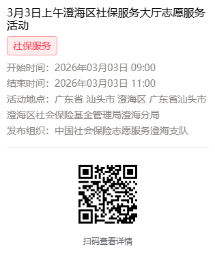 2026年3月2日至3月6日市社保局澄海分局大厅志愿服务活动,需要每一个可爱的你参与!
