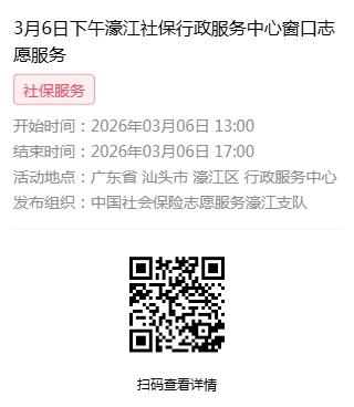 2026年3月2日至2026年3月6日市社保局濠江分局驻行政服务中心窗口志愿服务活动,需要每一个可爱的你参与!