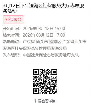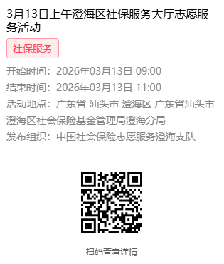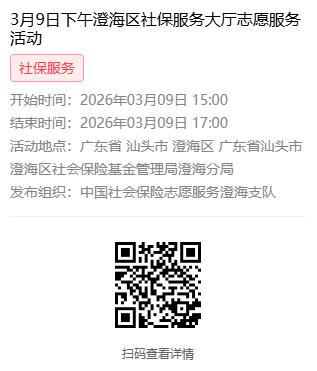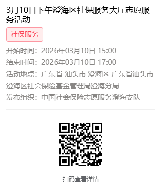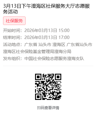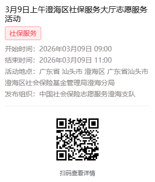 2026年3月9日至3月13日市社保局澄海分局大厅志愿服务活动,需要每一个可爱的你参与!