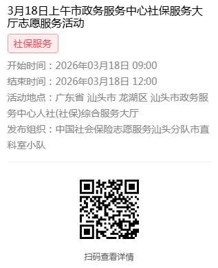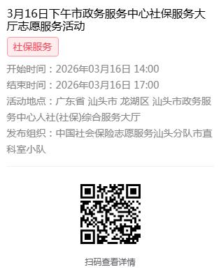 为充分保障我市社保志愿者权益,自2022年10月18日起,报名参加汕头市社保局和各分局志愿活动的同志须持有志愿者证并已激活,请各位志愿者遵照执行。