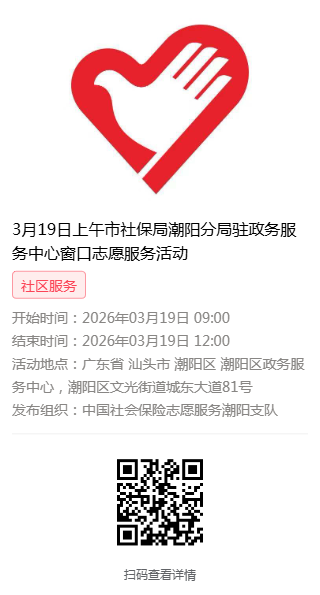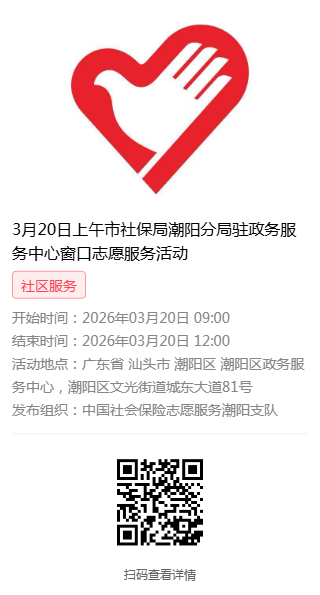 2026年3月16日至3月20日市社保局潮阳分局驻政务服务中心窗口志愿服务活动,需要每一个可爱的你参与!