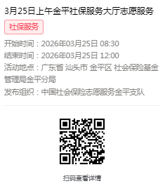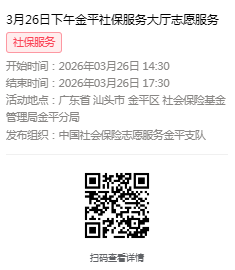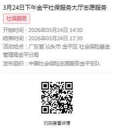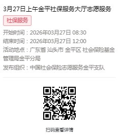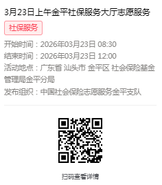 2026年3月23日至3月27日市社保局金平分局大厅志愿服务活动,需要每一个可爱的你参与!