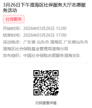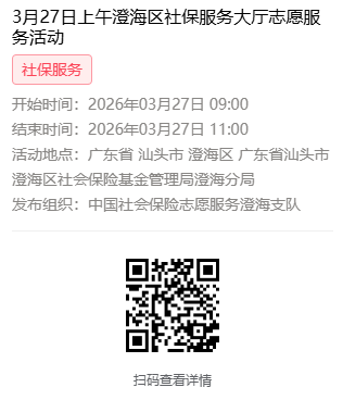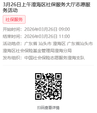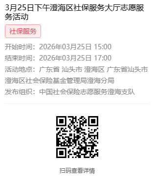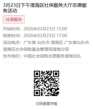 2026年3月23日至3月27日市社保局澄海分局大厅志愿服务活动,需要每一个可爱的你参与!