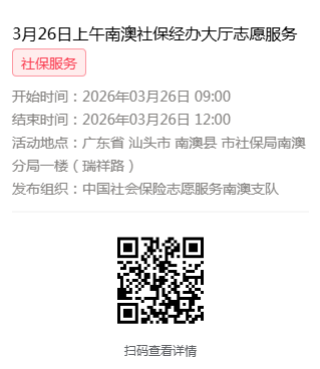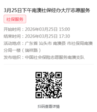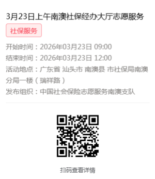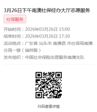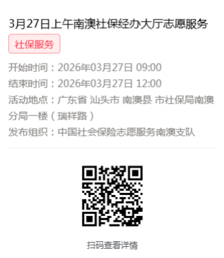 2026年3月23日至3月27日市社保局南澳分局大厅志愿服务活动,需要每一个可爱的你参与!
