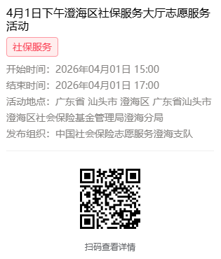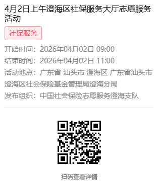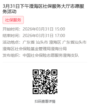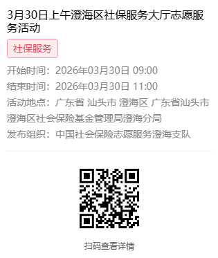 2026年3月30日至4月3日市社保局澄海分局大厅志愿服务活动,需要每一个可爱的你参与!