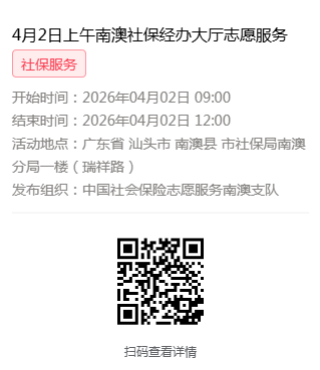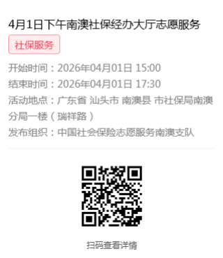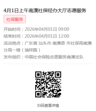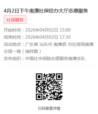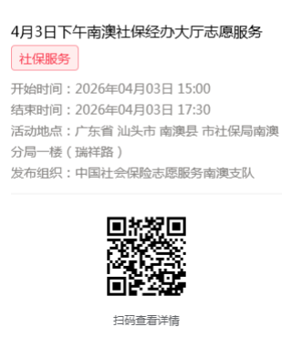 2026年3月30日至4月3日市社保局南澳分局大厅志愿服务活动,需要每一个可爱的你参与!