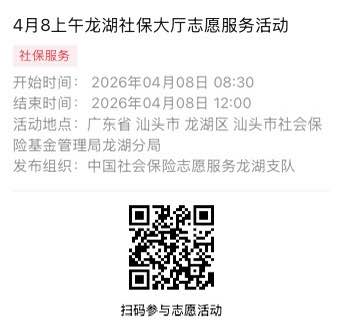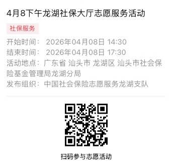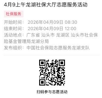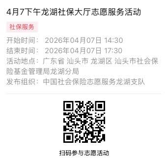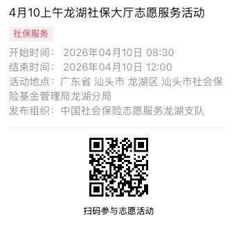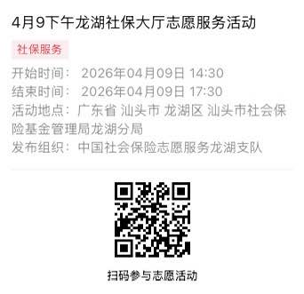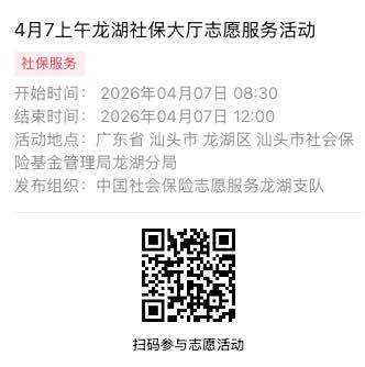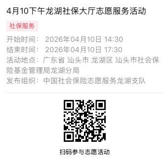 2026年4月7日至2026年4月10日市社保局龙湖分局大厅志愿服务活动,需要每一个可爱的你参与!