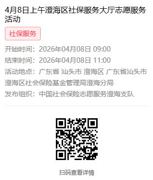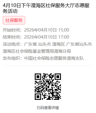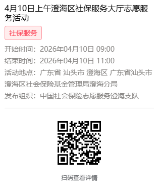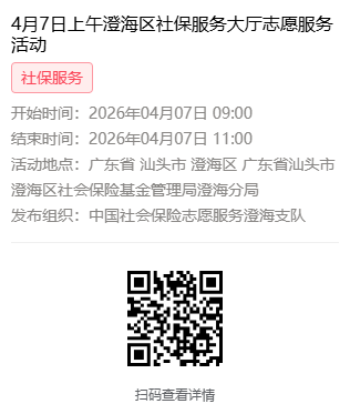 2026年4月7日至4月10日市社保局澄海分局大厅志愿服务活动,需要每一个可爱的你参与!
