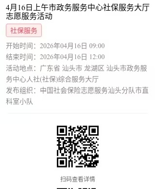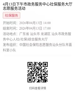 为充分保障我市社保志愿者权益,自2022年10月18日起,报名参加汕头市社保局和各分局志愿活动的同志须持有志愿者证并已激活,请各位志愿者遵照执行。