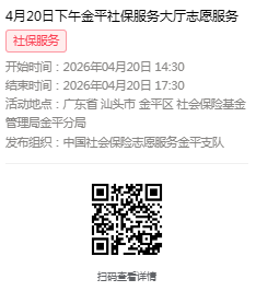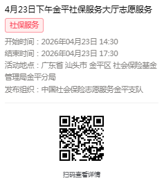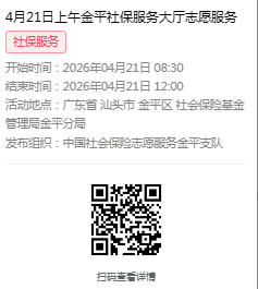 2026年4月20日至4月24日市社保局金平分局大厅志愿服务活动,需要每一个可爱的你参与!