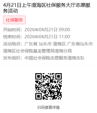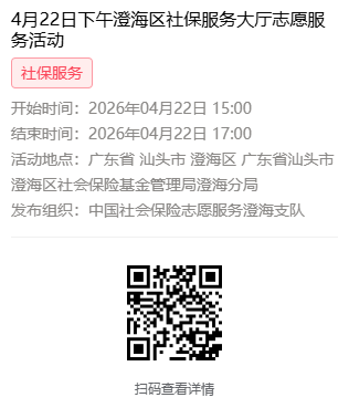 2026年4月20日至4月24日市社保局澄海分局大厅志愿服务活动,需要每一个可爱的你参与!