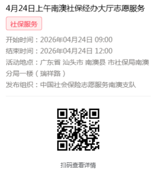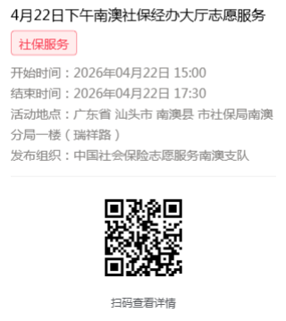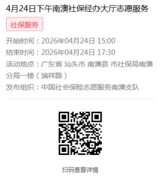 2026年4月20日至4月24日市社保局南澳分局大厅志愿服务活动,需要每一个可爱的你参与!