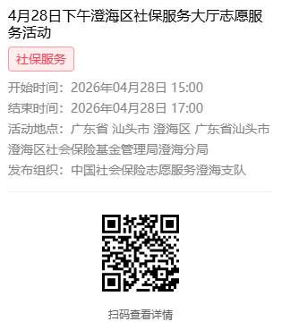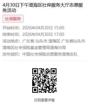 2026年4月27日至4月30日市社保局澄海分局大厅志愿服务活动,需要每一个可爱的你参与!