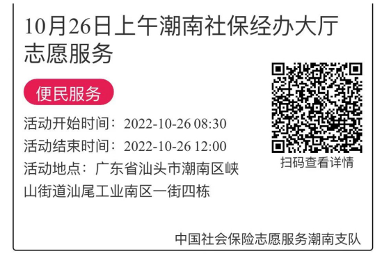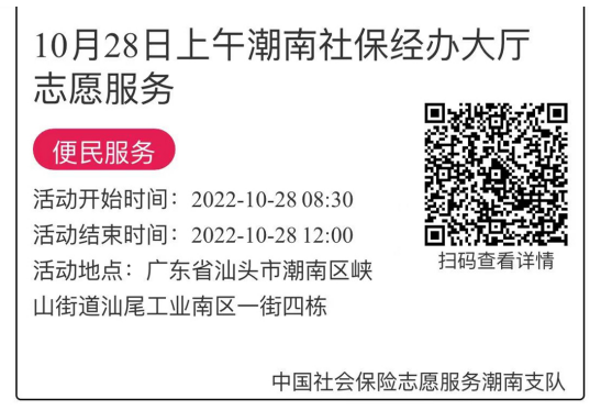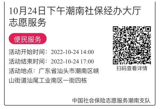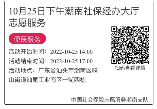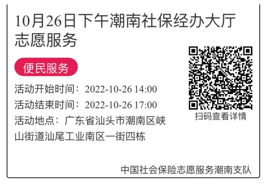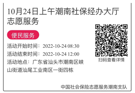 2022年10月24日至10月28日市社保局潮南分局大厅志愿服务活动,需要每一个可爱的你参与!