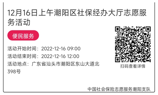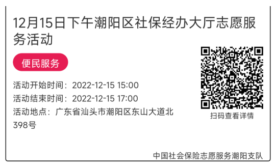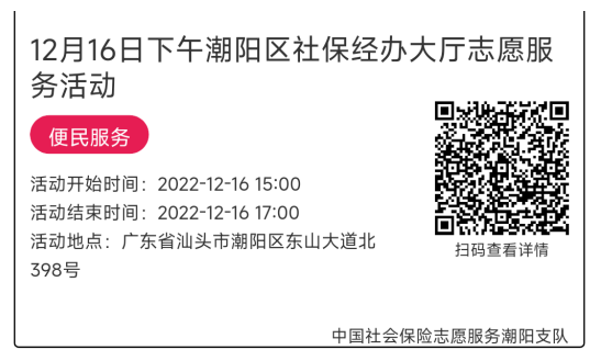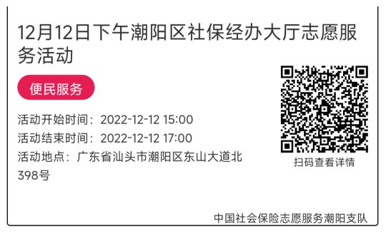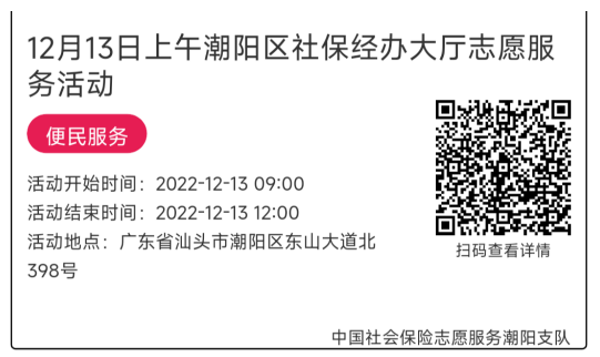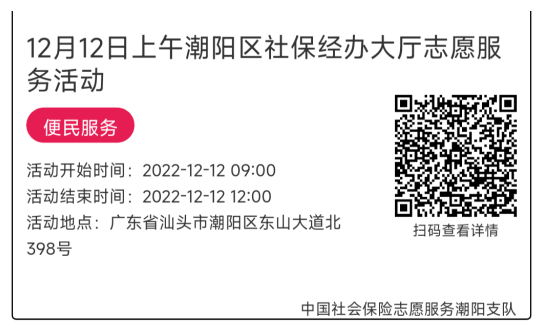 2022年12月12日至12月16日市社保局潮阳分局大厅志愿服务活动,需要每一个可爱的你参与!