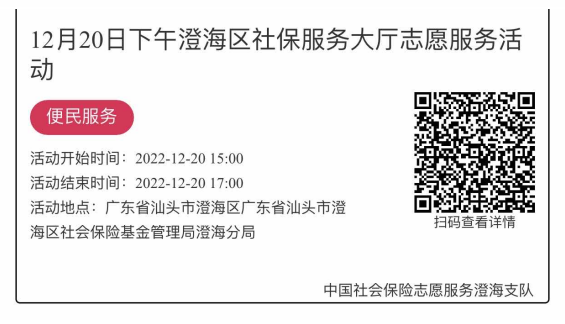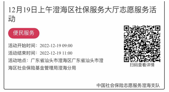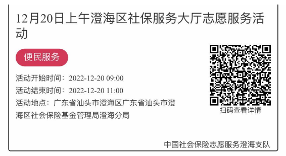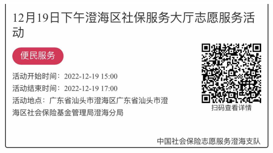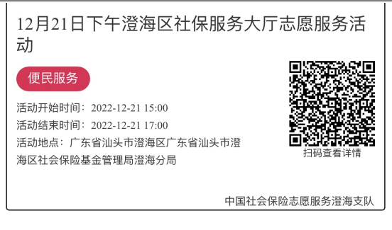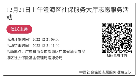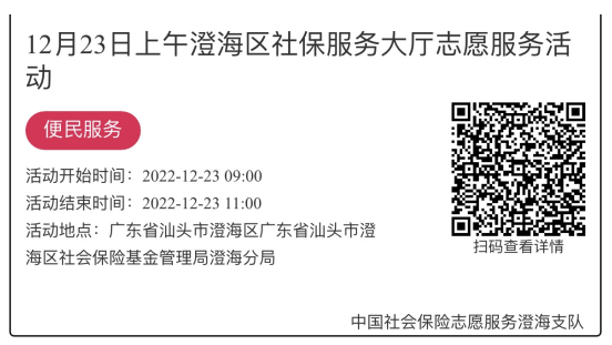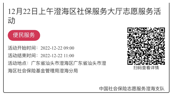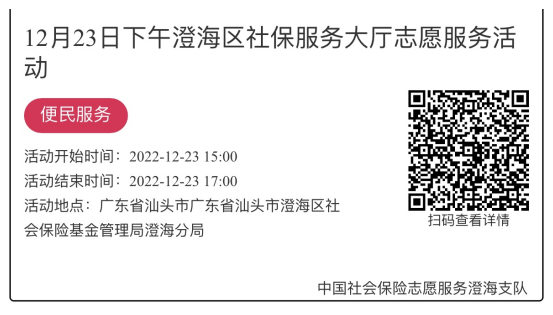 2022年12月19日至12月23日市社保局澄海分局大厅志愿服务活动,需要每一个可爱的你参与!