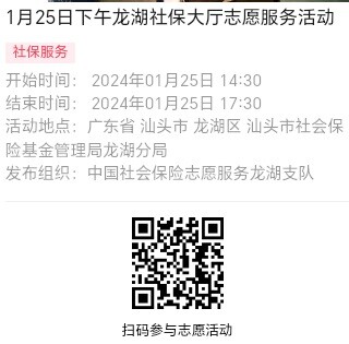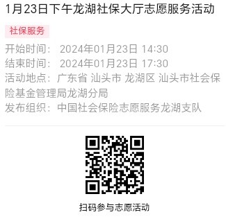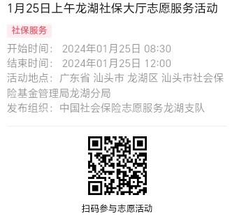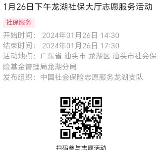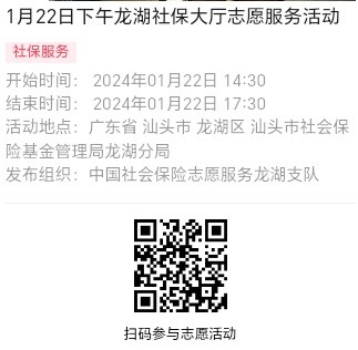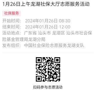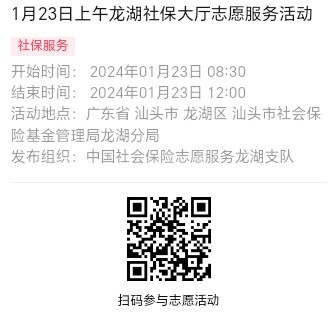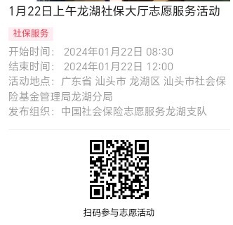2024年1月22日至1月26日市社保局龙湖分局大厅志愿服务活动,需要每一个可爱的你参与!