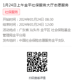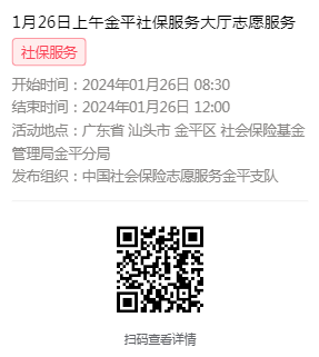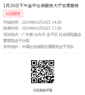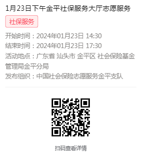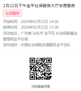 2024年1月22日至1月26日市社保局金平分局大厅志愿服务活动,需要每一个可爱的你参与!