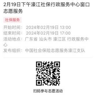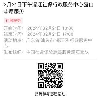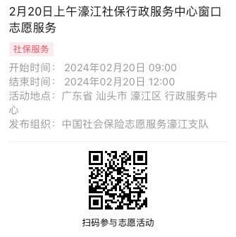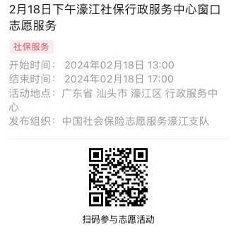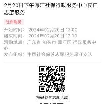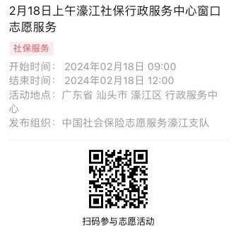 2024年2月18日至2月23日市社保局濠江分局驻行政服务中心窗口志愿服务活动,需要每一个可爱的你参与!