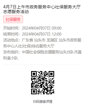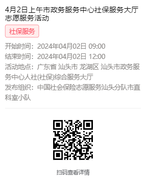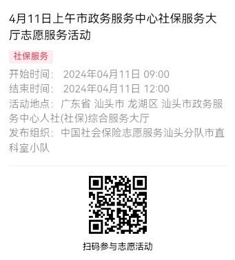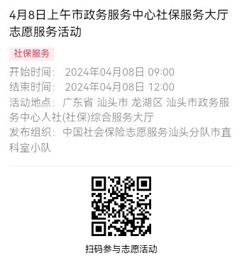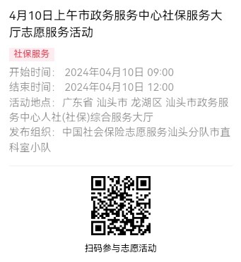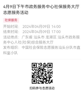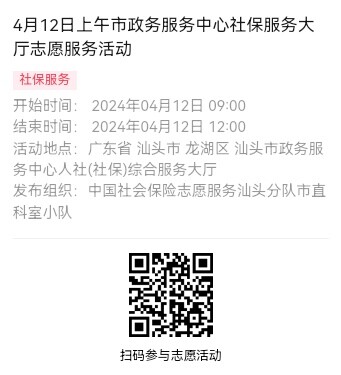 为充分保障我市社保志愿者权益,自2022年10月18日起,报名参加汕头市社保局和各分局志愿活动的同志须持有志愿者证并已激活,请各位志愿者遵照执行。