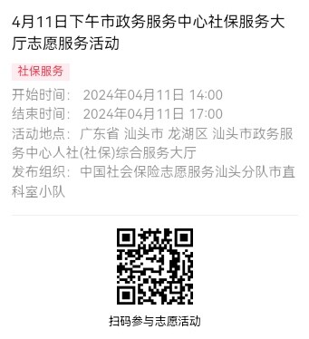 第一步:加入“中国社会保险志愿服务汕头分队”或下属各支队