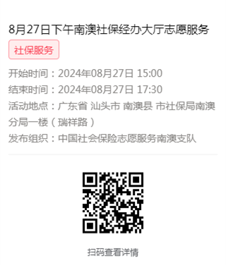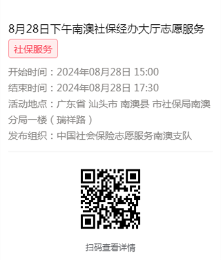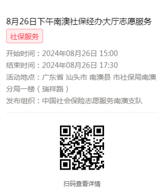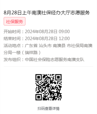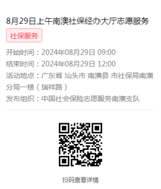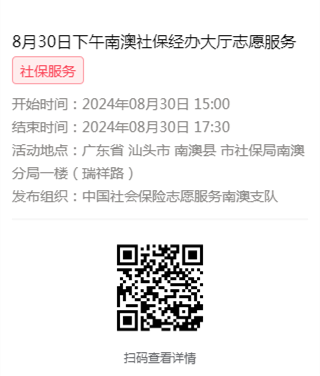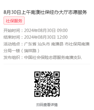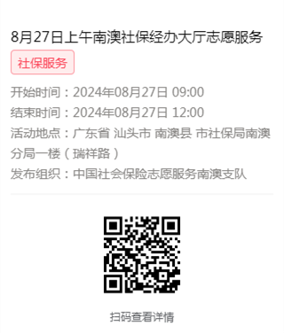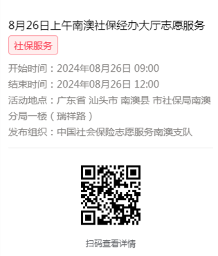 2024年8月26日至8月30日市社保局南澳分局大厅志愿服务活动,需要每一个可爱的你参与!