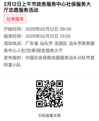 为充分保障我市社保志愿者权益,自2022年10月18日起,报名参加汕头市社保局和各分局志愿活动的同志须持有志愿者证并已激活,请各位志愿者遵照执行。