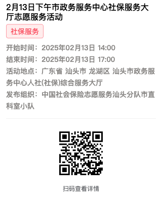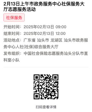 第一步:加入“中国社会保险志愿服务汕头分队”或下属各支队