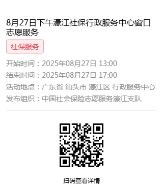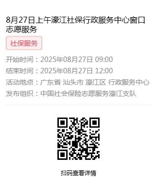 2025年8月25日至2025年8月29日市社保局濠江分局驻行政服务中心窗口志愿服务活动,需要每一个可爱的你参与!