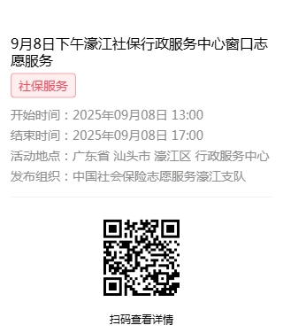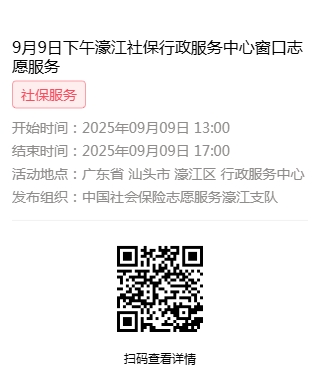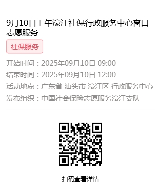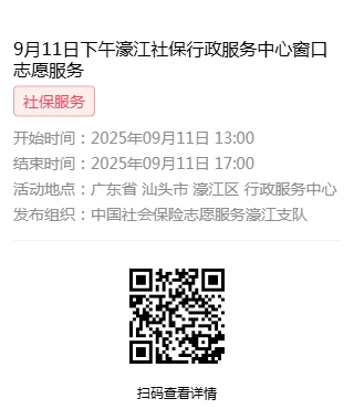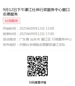 2025年9月8日至2025年9月12日市社保局濠江分局驻行政服务中心窗口志愿服务活动,需要每一个可爱的你参与!