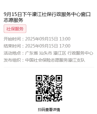 2025年9月15日至2025年9月19日市社保局濠江分局驻行政服务中心窗口志愿服务活动,需要每一个可爱的你参与!