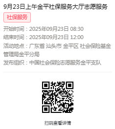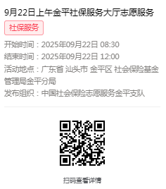 2025年9月22日至9月26日市社保局金平分局大厅志愿服务活动,需要每一个可爱的你参与!