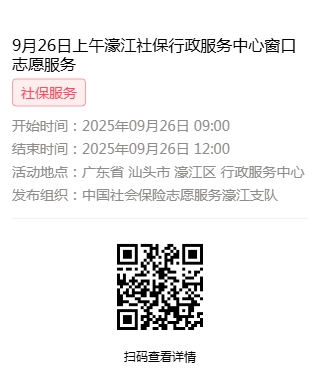 2025年9月22日至2025年9月26日市社保局濠江分局驻行政服务中心窗口志愿服务活动,需要每一个可爱的你参与!
