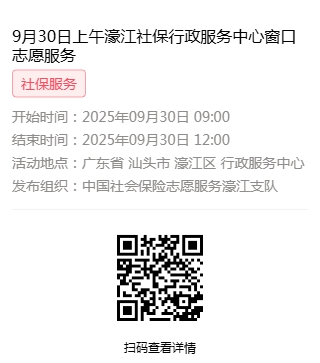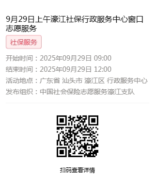 2025年9月28日至2025年9月30日市社保局濠江分局驻行政服务中心窗口志愿服务活动,需要每一个可爱的你参与!